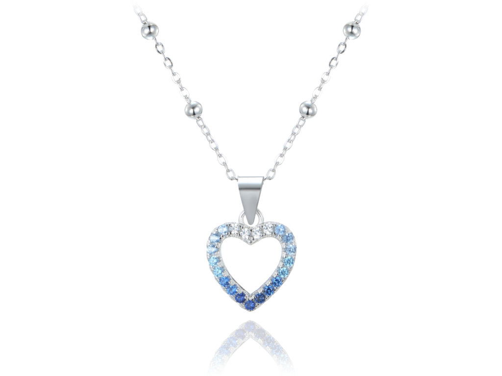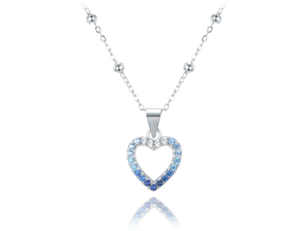 MINET Stříbrný náhrdelník srdce se zirkony v modrých odstínech