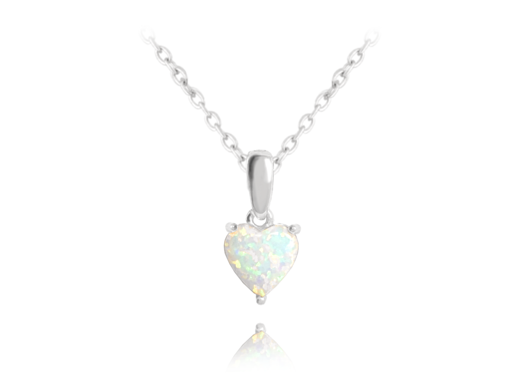 MINET Stříbrný náhrdelník SRDÍČKO s bílým opálkem