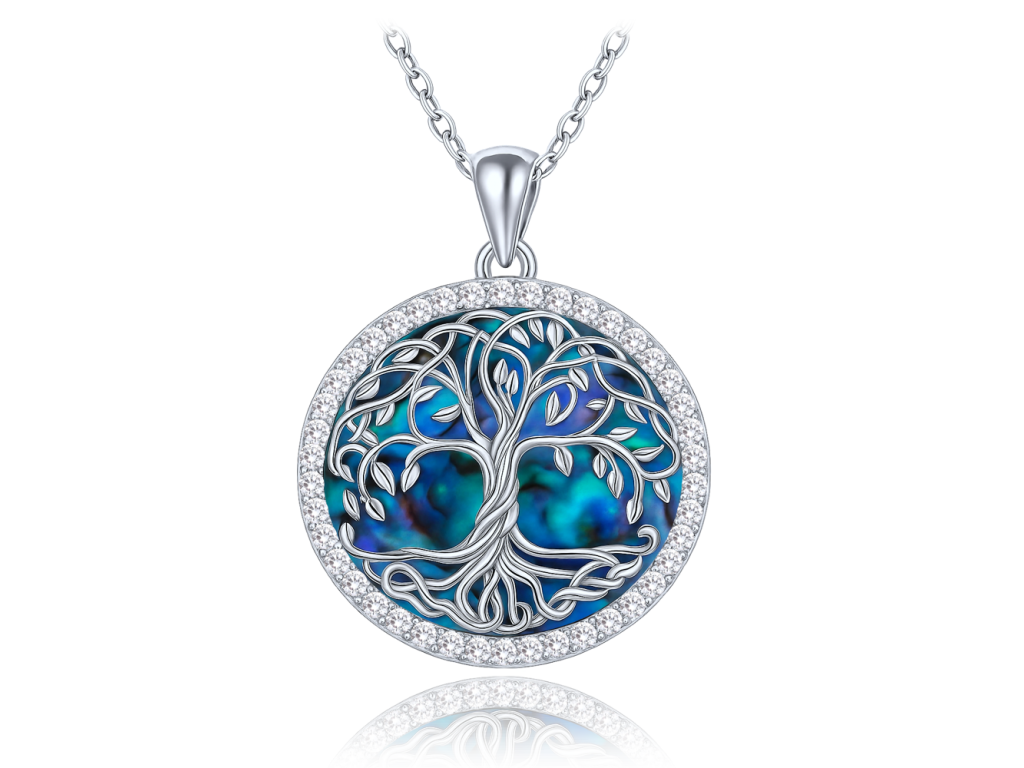MINET Stříbrný náhrdelník strom života s bílými zirkony a perletí