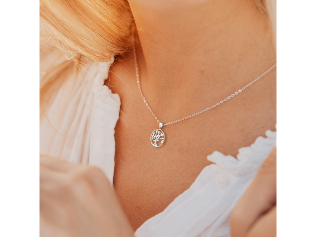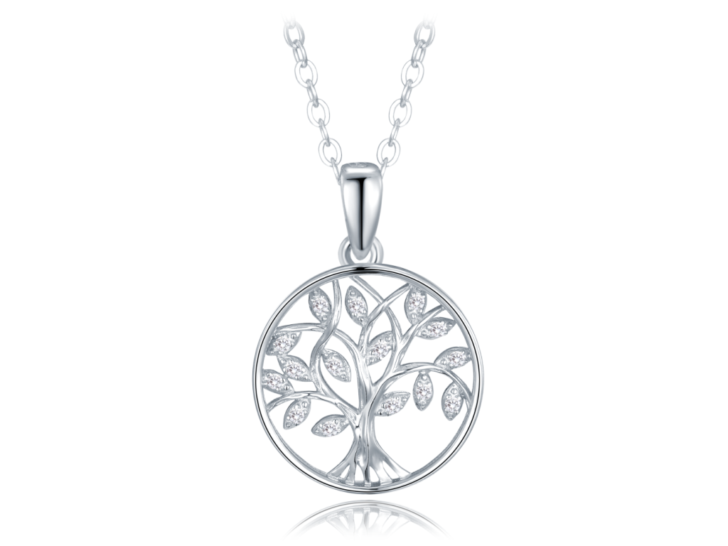MINET Stříbrný náhrdelník strom života s bílými zirkony