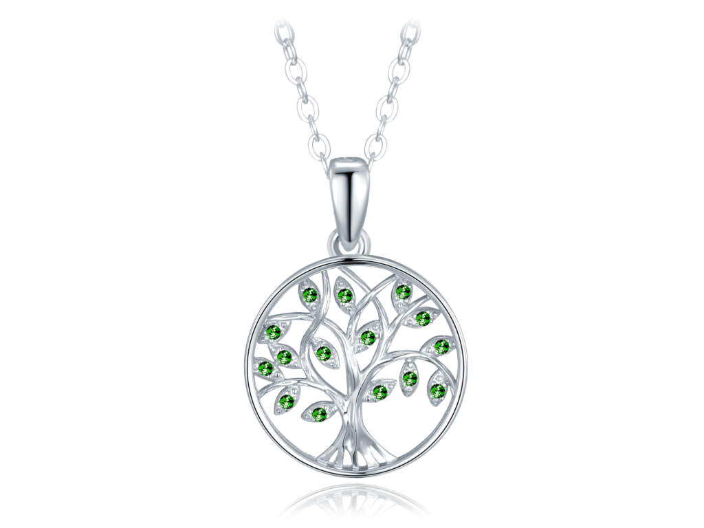 MINET Stříbrný náhrdelník strom života s zelenými zirkony