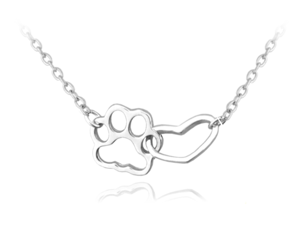 MINET Stříbrný náhrdelník TLAPKA se srdíčkem