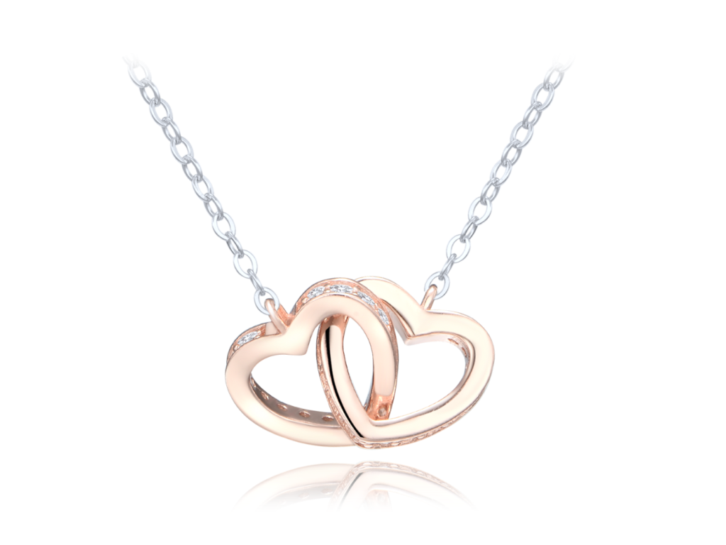 MINET Stříbrný náhrdelník v kombinaci s Rosegold se spojenými srdíčky a bílými zirkony