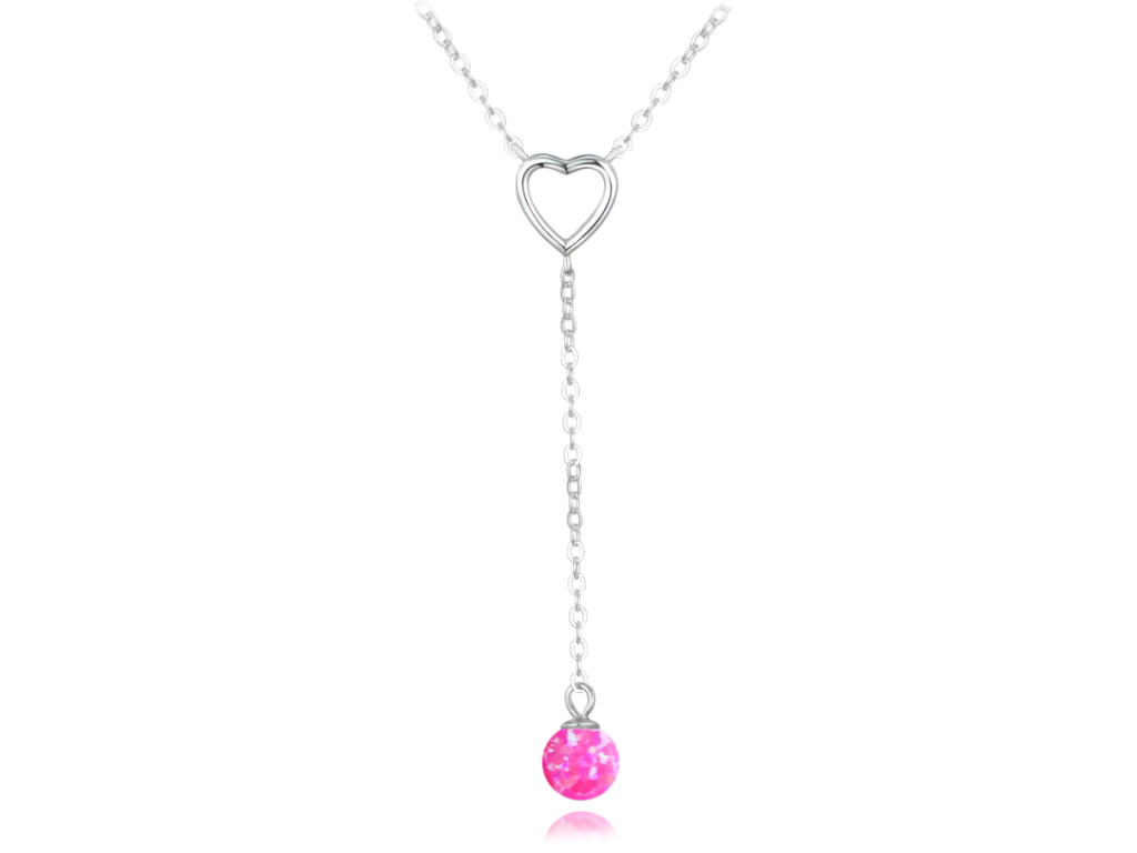 MINET Stříbrný náhrdelník visící kulička s růžovým opálkem a zirkonem