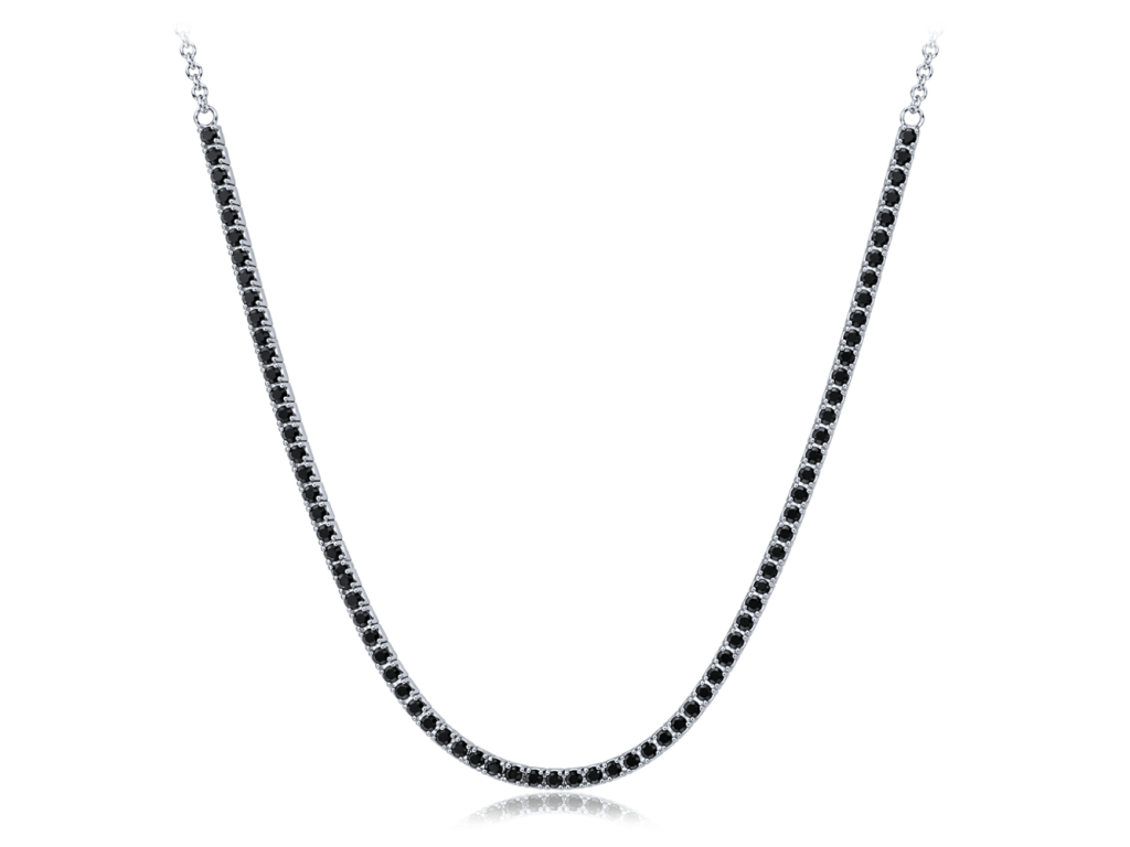 MINET Stříbrný tenisový náhrdelník s černými zirkony