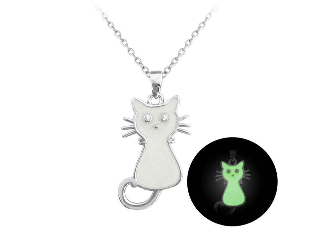 Stříbrné kočičky, které navíc SVÍTÍ VE TMĚ? Ne, neděláme si srandu. Vystavte na chvíli světlu, poté zhasněte a uvidíte, jak se barevné části jasně rozzáří. Šperk Vám tak bude tvořit zajímavý doplněk i v noci a určitě nenechá Vaše okolí bez povšimnutí. Stříbrné svíticí kočky jsou vyrobeny z pravého rhodiovaného stříbra a dlouho si tak udrží svou barvu i lesk.Doplňkové parametry