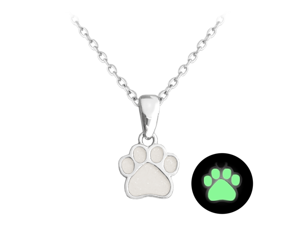 MINET Svítící bílý dětský stříbrný náhrdelník TLAPKA