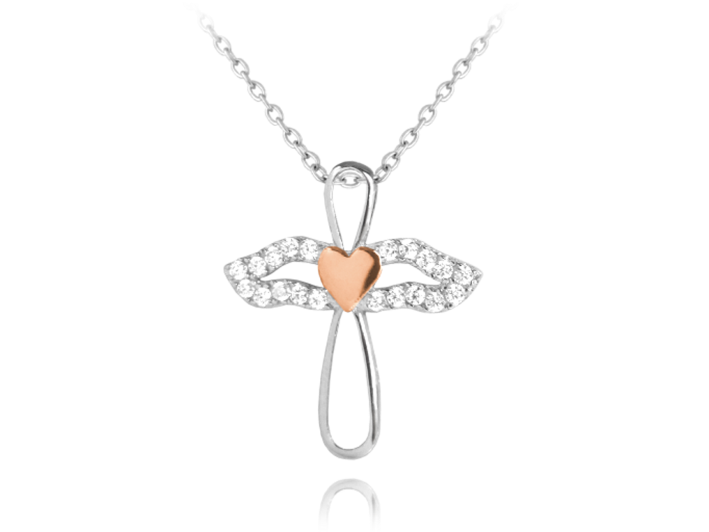 Andílek s růžovým srdíčkem a křídly se zirkony je nevšedním doplňkem, který zaujme. Je vyroben z pravého stříbra a povrch z rhodia, díky čemuž si zachová dlouhotrvající barvu i lesk. Povrch srdíčka je z 14K růžového zlata.Doplňkové parametry