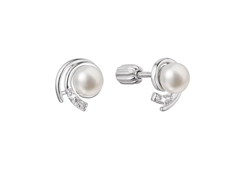 Stříbrné náušnice pecky s říční perlou a zirkony vír bílý 21091.1B