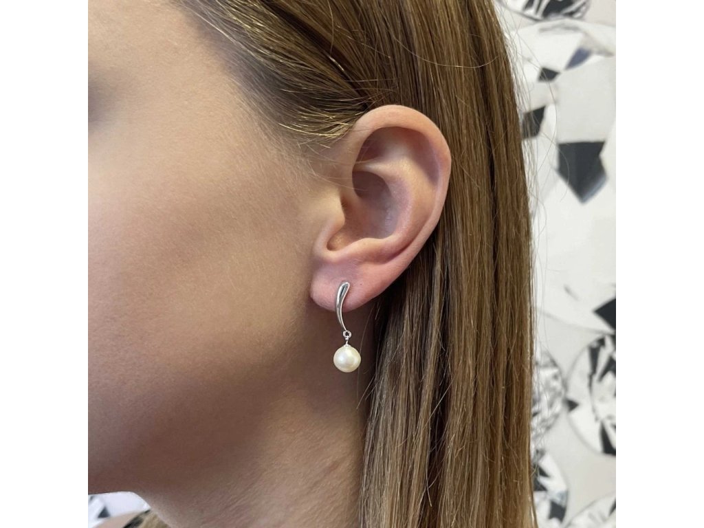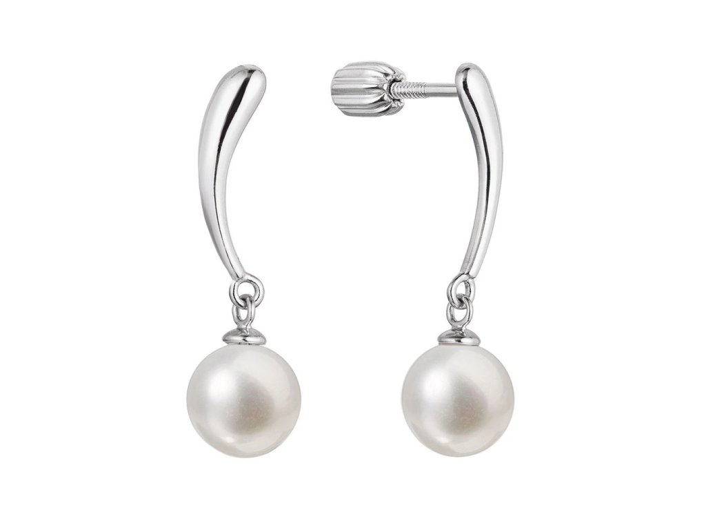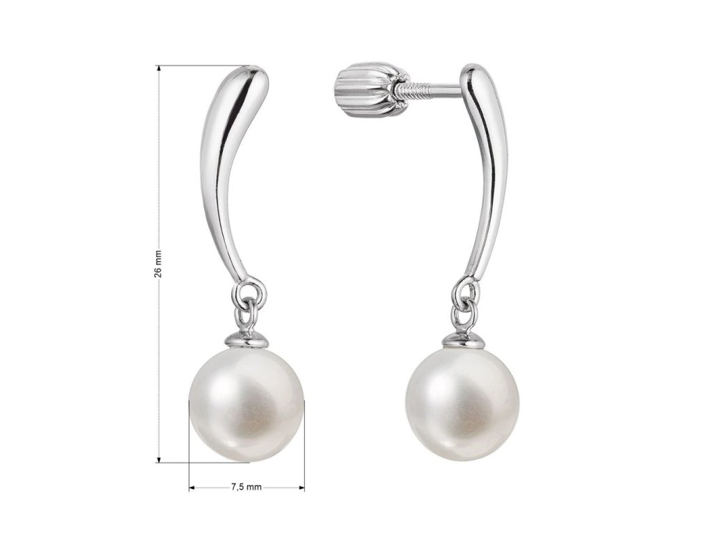 Stříbrné náušnice visací s kulatou říční perlou bílé 21095.1B