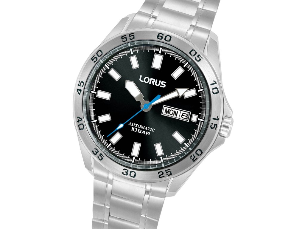 Lorus RL419CX9 jsou pánské automatické hodinky, které spojují sportovní charakter s klasickou hodinářskou technikou. Dominantou modelu je přehledný černý ciferník s výraznými indexy a ručkami, které zajišťují výbornou čitelnost i v horších světelných podmínkách. Modrá vteřinová ručka dodává celému designu moderní a svěží akcent.