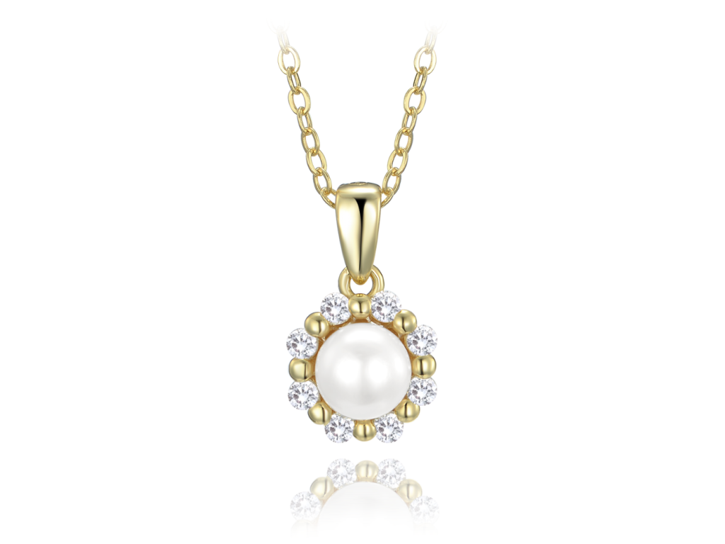 MINET Pozlacený stříbrný náhrdelník s bílou perlou a zirkony