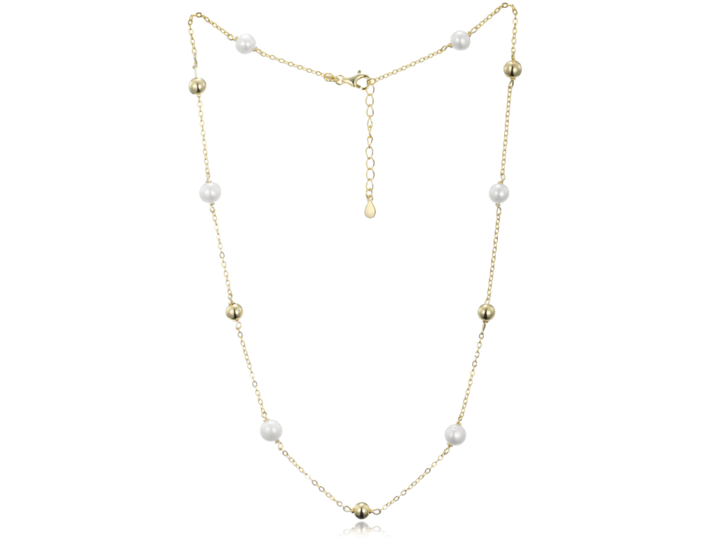 MINET Pozlacený stříbrný náhrdelník s kuličkami a přírodními perlami