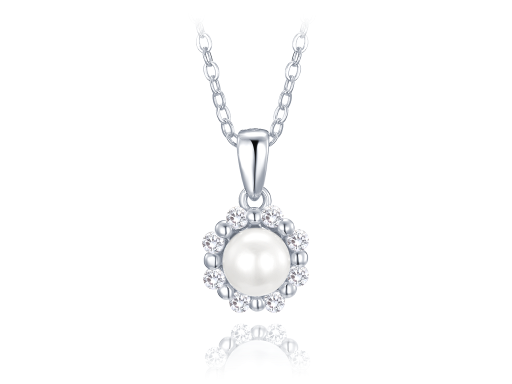 MINET Stříbrný náhrdelník s přírodní perlou a bílými zirkony