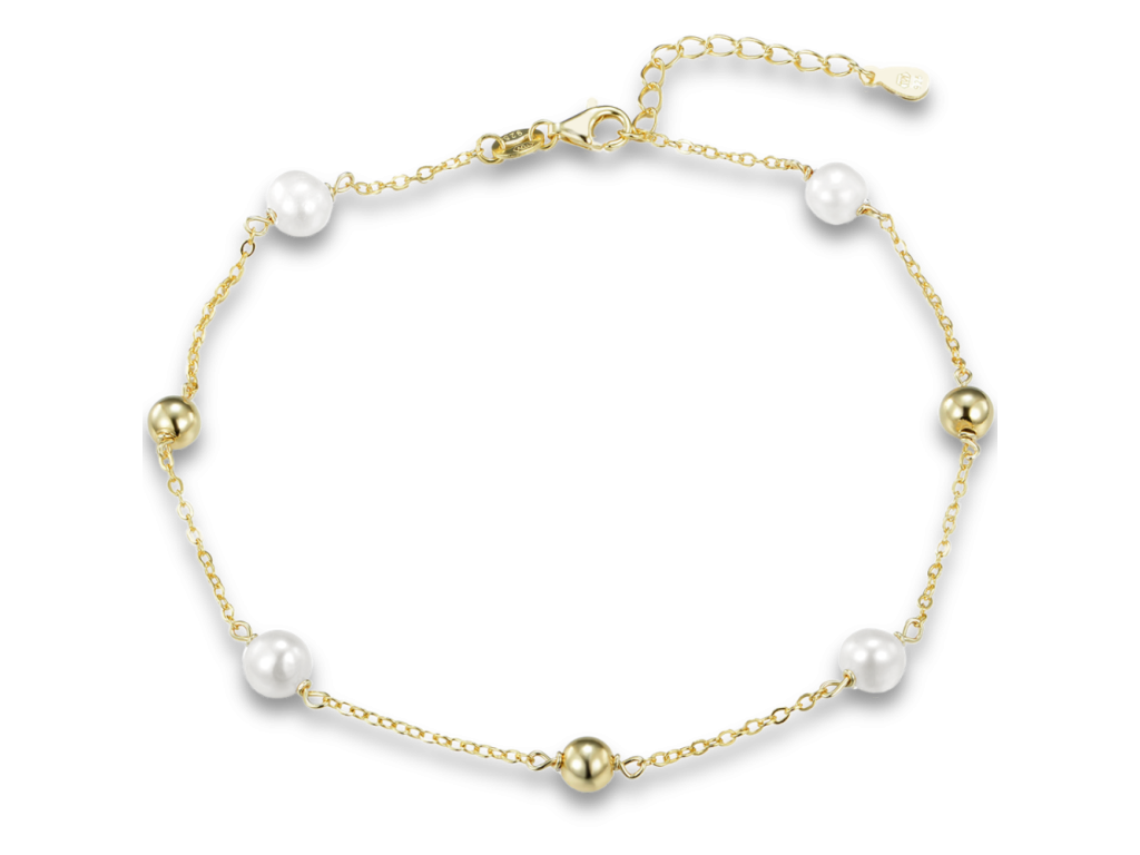 MINET Pozlacený stříbrný řetízek na kotník s kuličkami a přírodními perlami