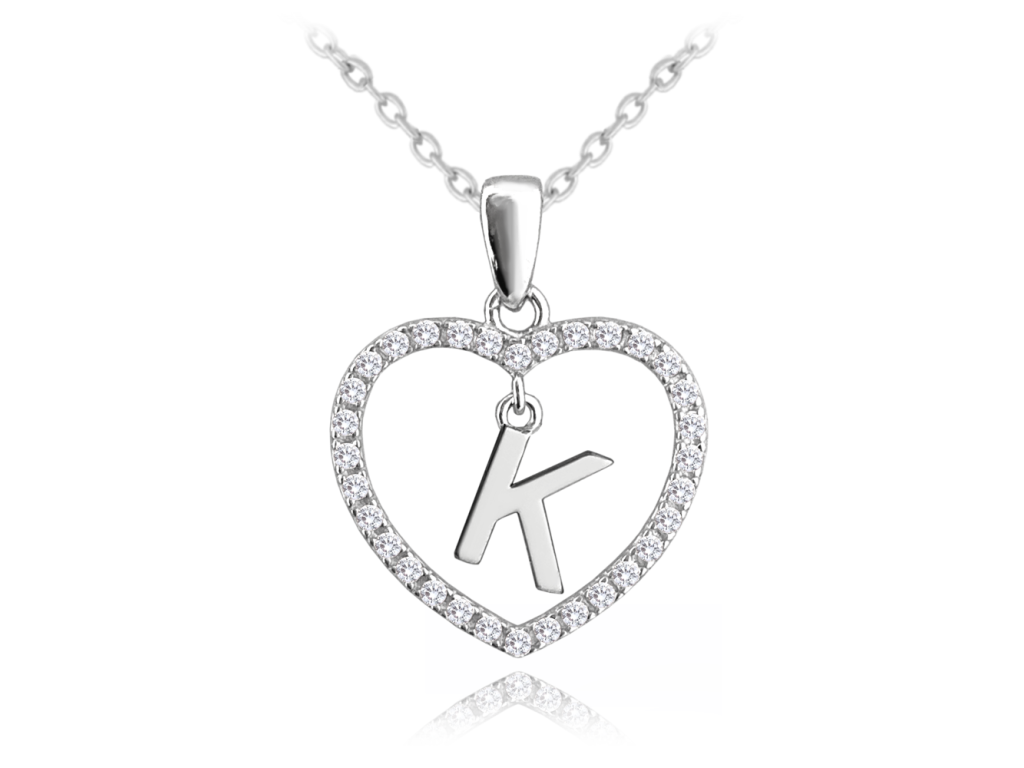 MINET Stříbrný náhrdelník písmeno v srdíčku "K" se zirkony