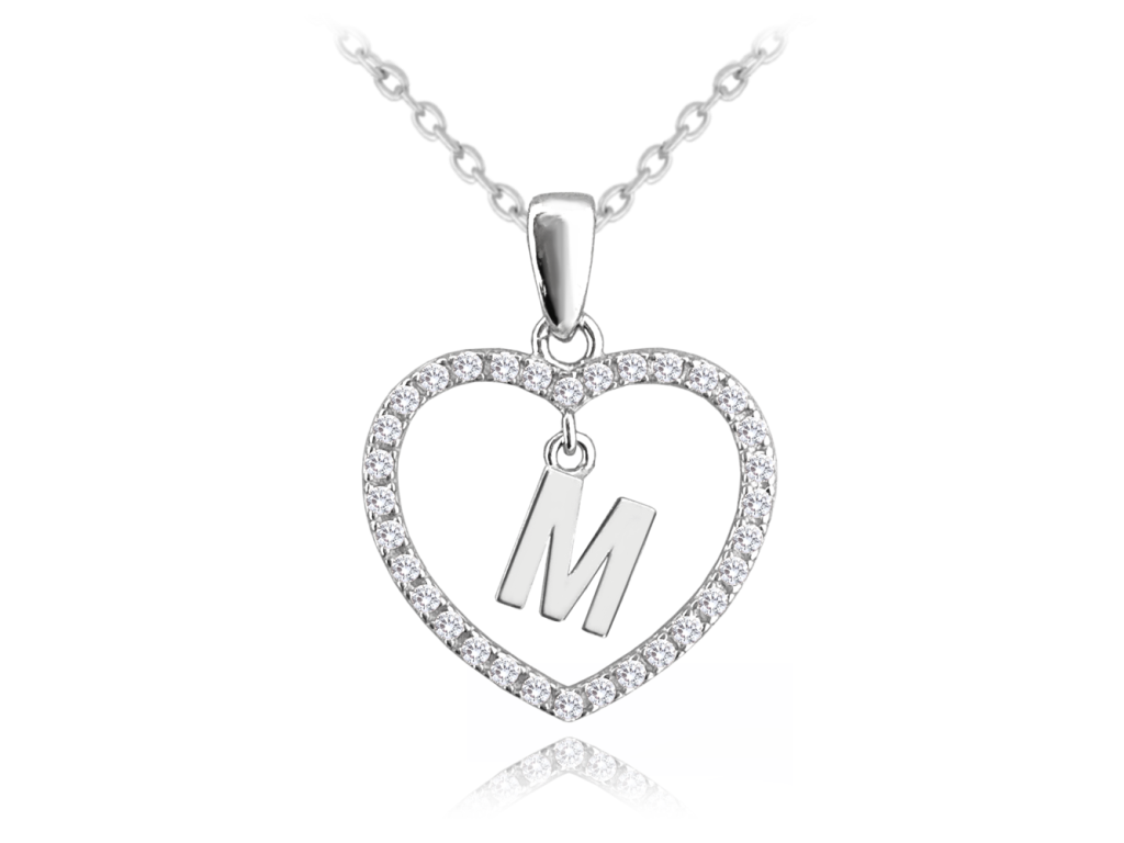 MINET Stříbrný náhrdelník písmeno v srdíčku "M" se zirkony