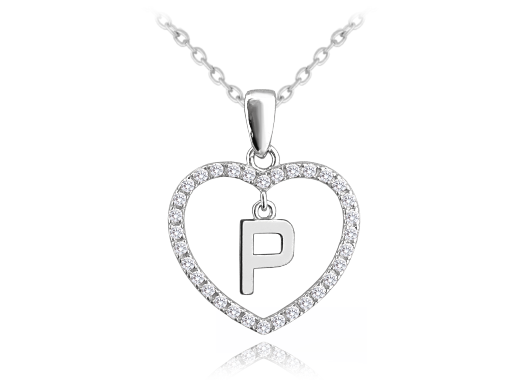 MINET Stříbrný náhrdelník písmeno v srdíčku "P" se zirkony