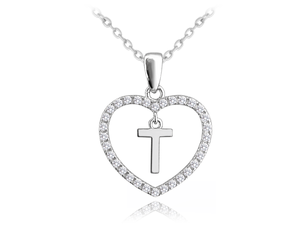 MINET Stříbrný náhrdelník písmeno v srdíčku "T" se zirkony