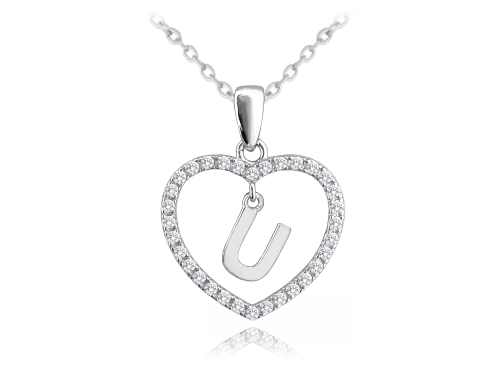 MINET Stříbrný náhrdelník písmeno v srdíčku "U" se zirkony