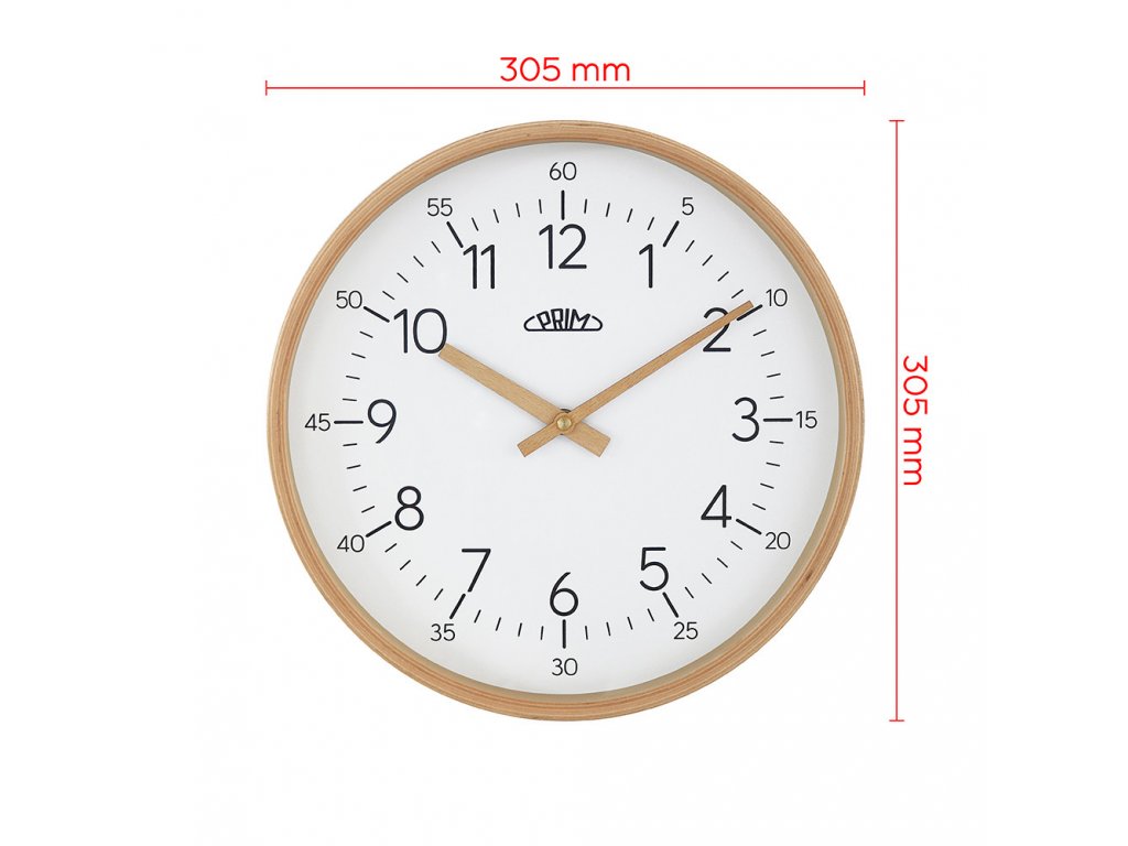 Nástěnné hodiny PRIM Forest uspokojí každého, kdo má rád jednoduchý design a přírodní materiály. Název této kolekce "PRIM Forest" napovídá, že tyto hodiny mají rám vyroben z příjemného dřevěného materiálu (mandžuský jasan). Hodiny se také mohou pyšnit jednoduchostí dřevěných ručiček.