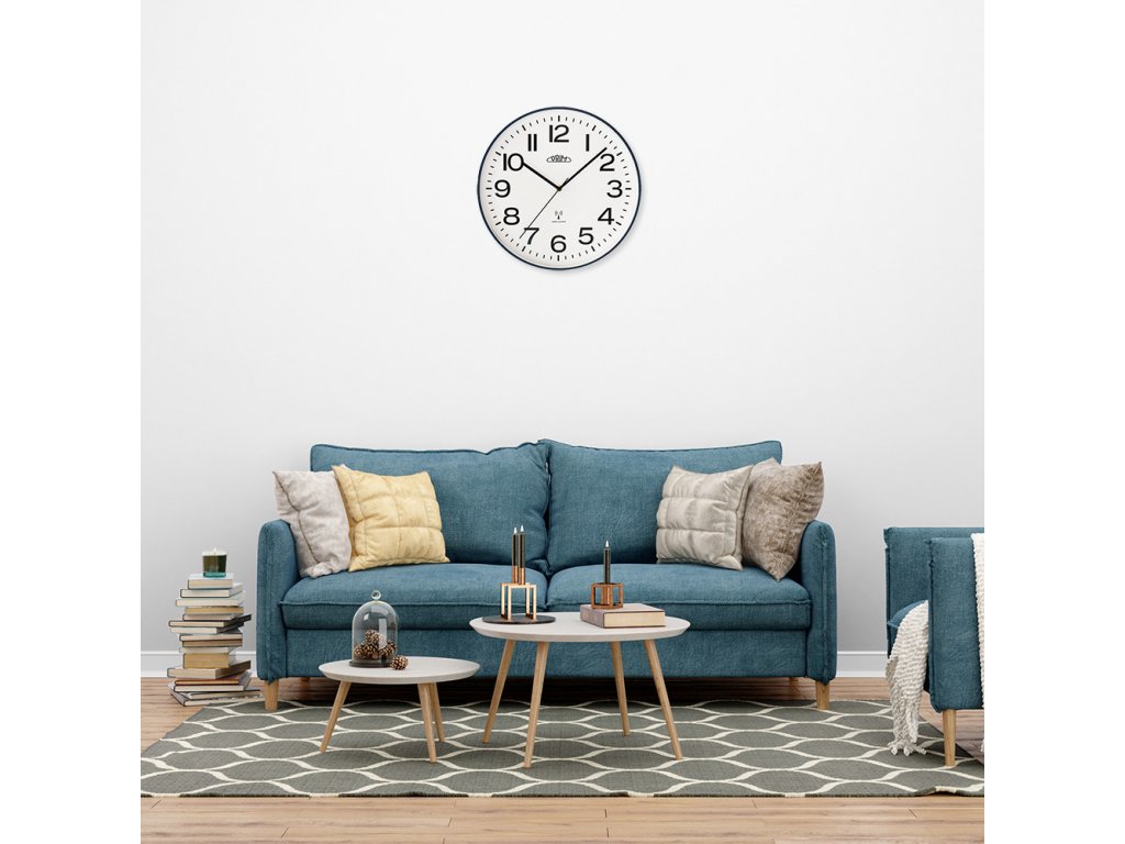 Rádiem řízené nástěnné plastové hodiny nejen pro příznivce klasického minimalistického designu. Obrovskou předností těchto hodin tkví v automatickém nastavování aktuálního času, který je synchronizovaný 12 x denně prostřednictvím radiového signálu. S těmito hodinami odpadá jakýkoliv manuální zásah do chodu času. Při výrobě těchto hodin byl použit hodinový strojek s plynulým chodem, díky kterému je pohyb sekundové ručičky takřka neslyšitelný. Ručičky navíc před poškozením chrání minerální sklo.