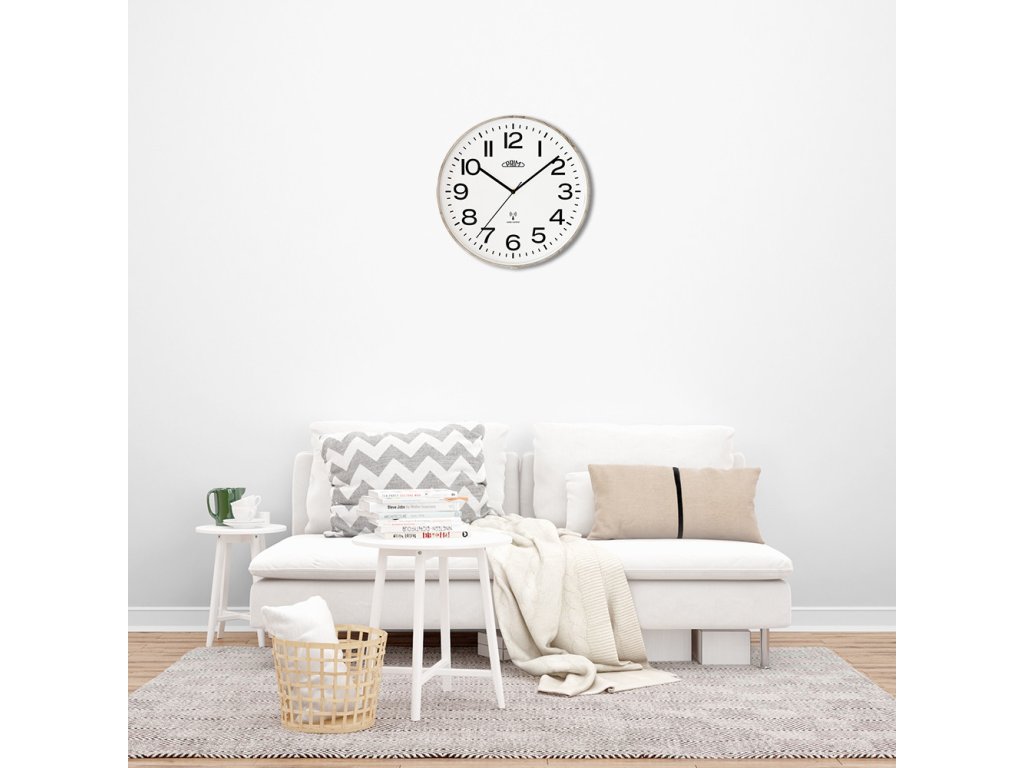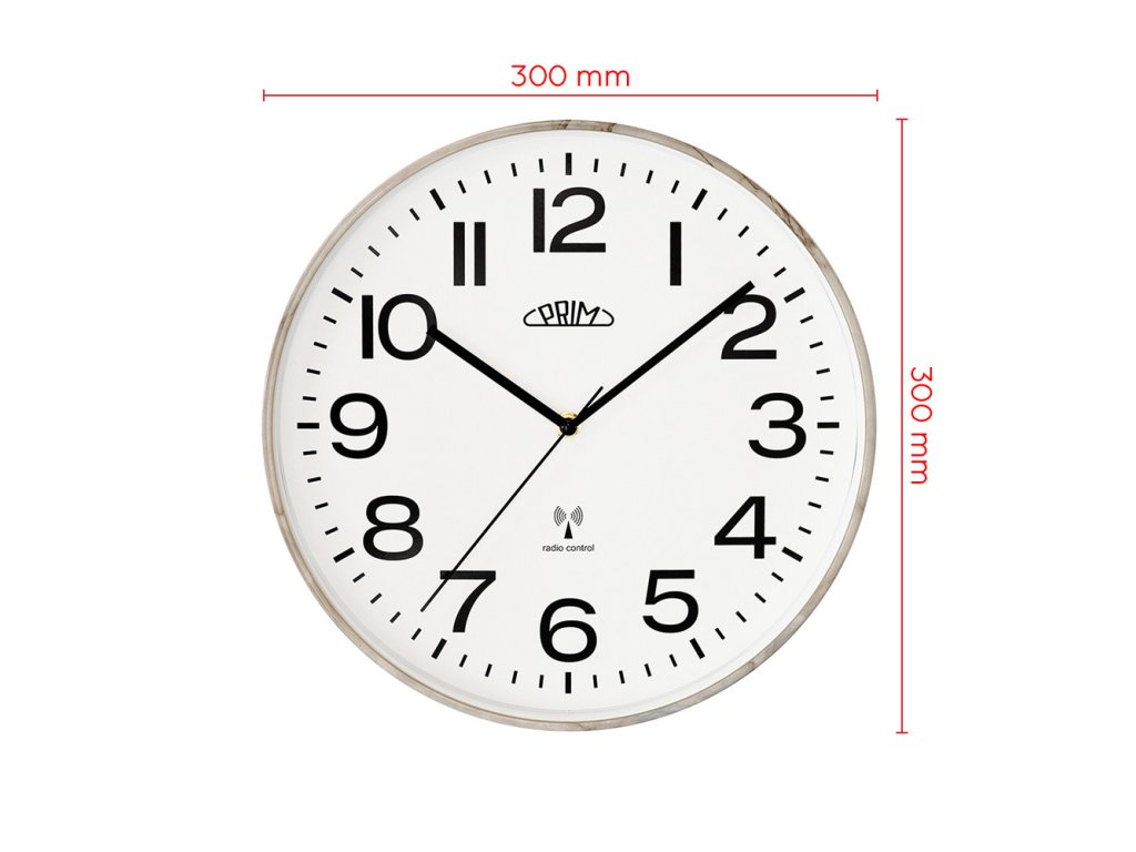 Rádiem řízené nástěnné plastové hodiny nejen pro příznivce klasického minimalistického designu. Obrovskou předností těchto hodin tkví v automatickém nastavování aktuálního času, který je synchronizovaný 12 x denně prostřednictvím radiového signálu. S těmito hodinami odpadá jakýkoliv manuální zásah do chodu času. Při výrobě těchto hodin byl použit hodinový strojek s plynulým chodem, díky kterému je pohyb sekundové ručičky takřka neslyšitelný. Ručičky navíc před poškozením chrání minerální sklo.