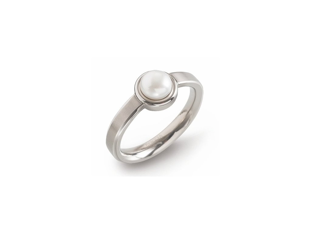 Dámský titanový prsten Boccia Titanium s perlou.