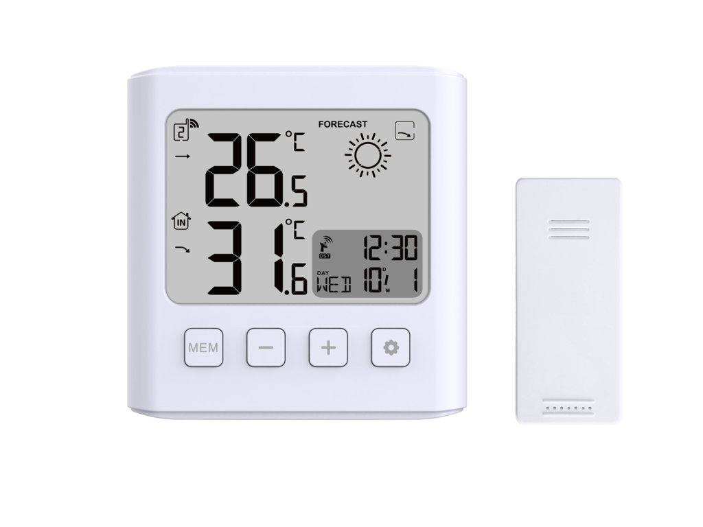 Rádiem řízený digitální budík JVD s venkovním čidlem a měřením vnitřní a venkovní teploty. Displej je možné osvítit příjemným světlem, které se rozsvítí na pár vteřin po stisku tlačítka. Na rozměrném displeji najdeme veškeré informace, zobrazení času, kalendáře a údaj vnitřní a venkovní teploty a také jednoduchou předpověď počasí ve formě symbolů. O napájení se starají 2 mikrotužkové AAA baterie.