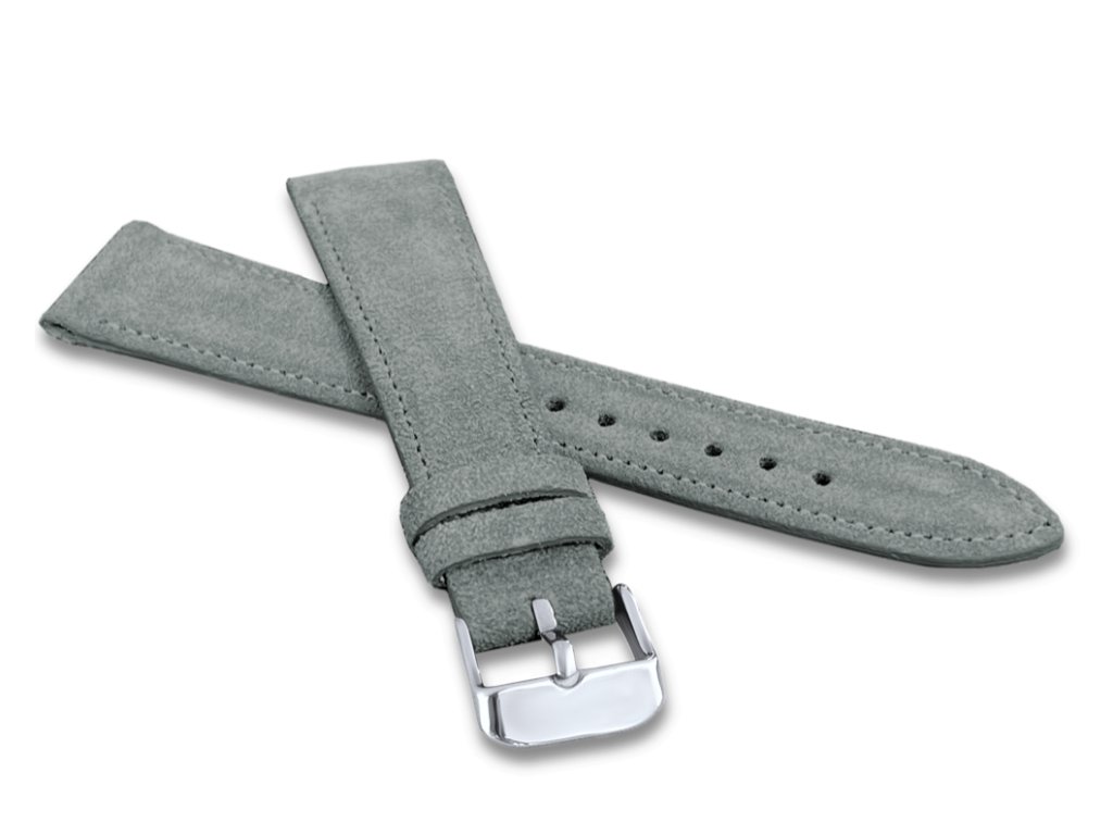 Tento řemínek je vyroben z pravé kůže typu "Suede", známé svou sametově jemnou strukturou a přirozeně matným vzhledem. Jde o broušenou vrstvu kůže – měkkou na dotek, poddajnou a mimořádně pohodlnou při nošení. Kůže pochází z tradičních evropských koželužen, které kombinují zkušenosti předchozích generací s moderními přístupy. Výsledkem je lehký, stylový řemínek, který si zachovává přirozený charakter a krásně se přizpůsobí zápěstí.