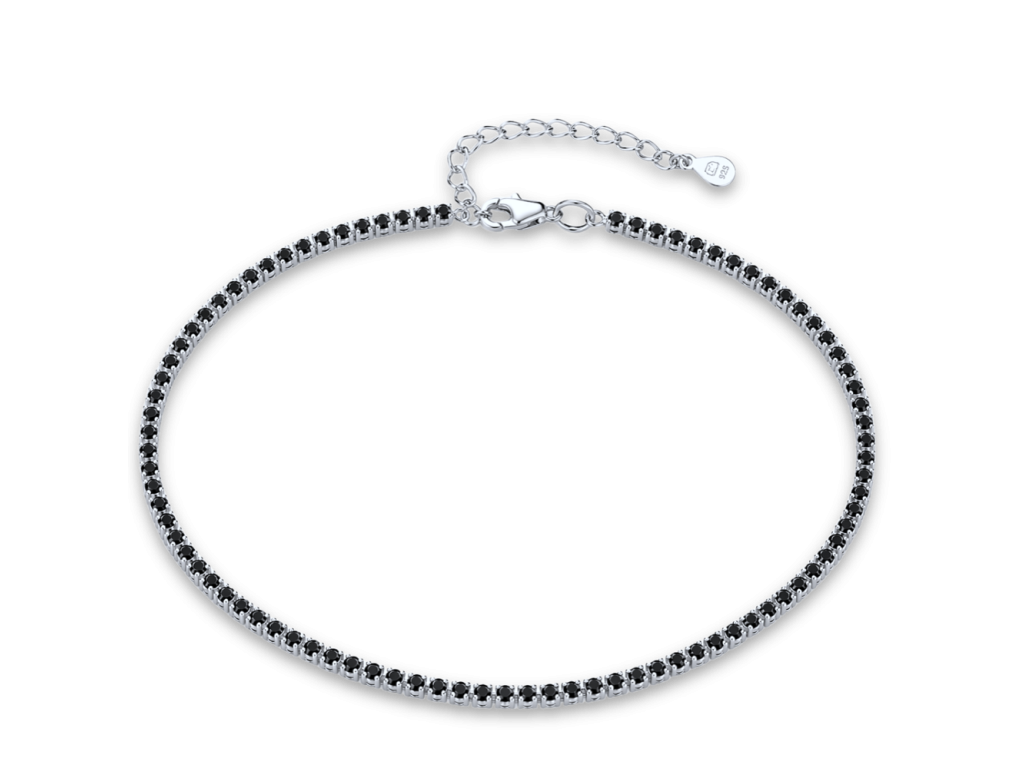 Dámský tenisový řetízek na kotník MINET je vyroben ze stříbra Ag 925/1000 s rhodiovaným povrchem. Černý zirkon dodává výrazný kontrast a moderní vzhled, který se hodí k elegantním i minimalistickým outfitům. MINET je česká značka zaměřená na kvalitní hodinky a šperky ze stříbra a zlata.Doplňkové parametry