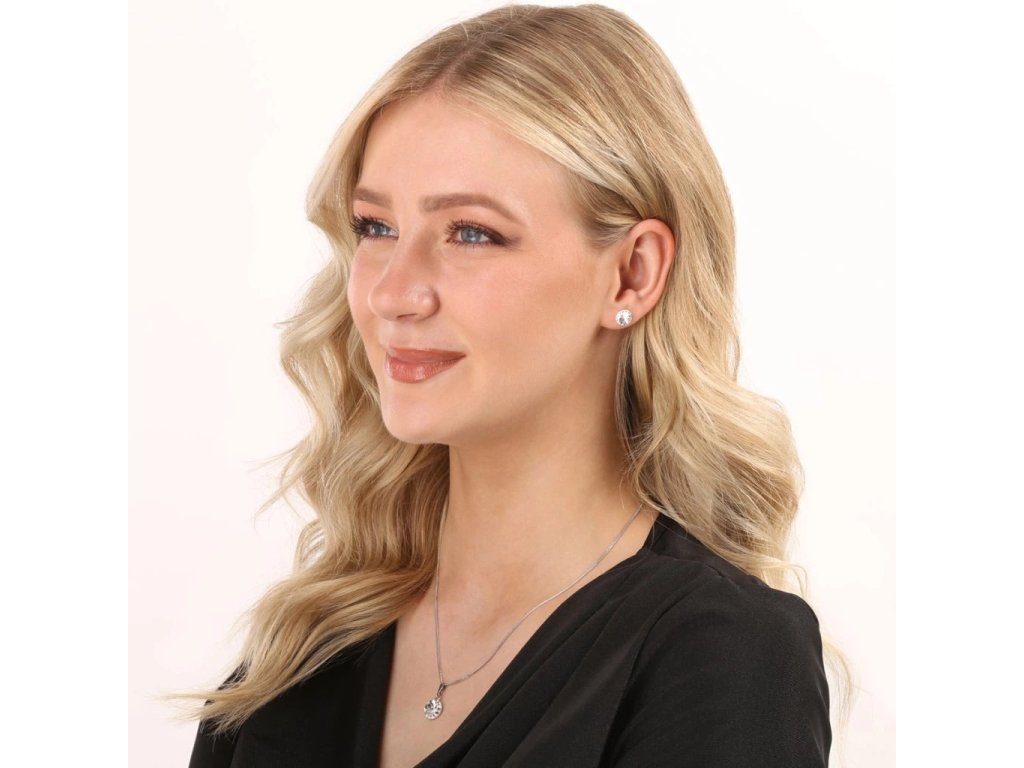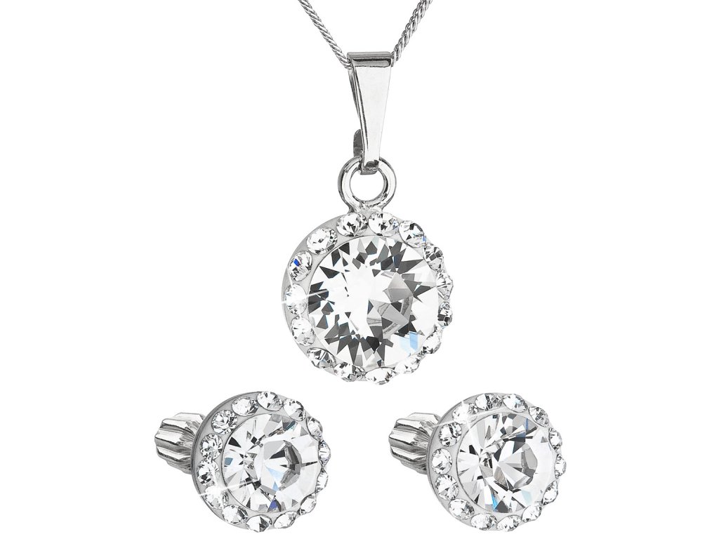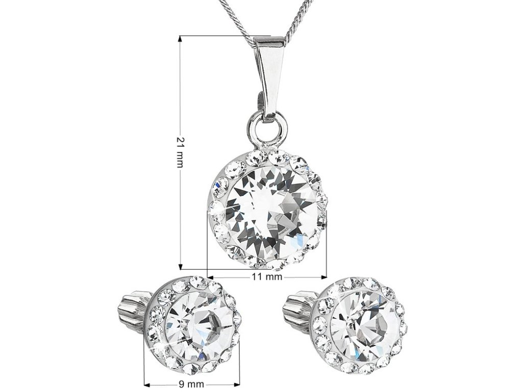 Luxusní stříbrná souprava šperků se Swarovski krystaly. Sada obsahuje náušnice na šroubek, přívěs a řetízek.