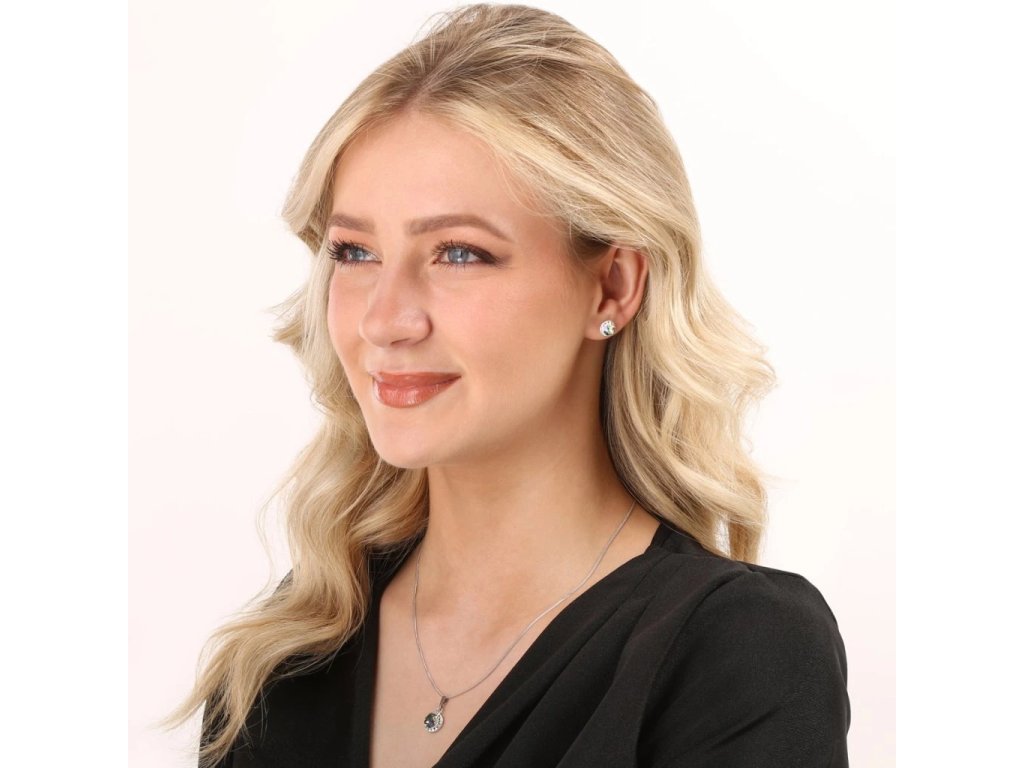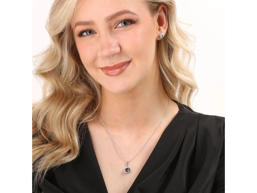 Luxusní stříbrná souprava šperků se Swarovski krystaly. Sada obsahuje náušnice na šroubek, přívěs a řetízek.