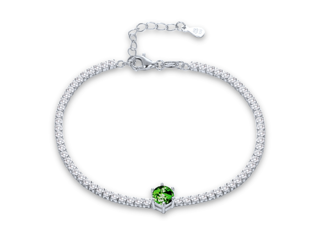 Náramek ze stříbra Ag 925/1000 s rhodiovaným povrchem si zachovává lesk. Zelený a bílý zirkon dodávají jemný třpyt. MINET je česká značka zaměřená na kvalitní hodinky a šperky ze stříbra a zlata.Doplňkové parametry