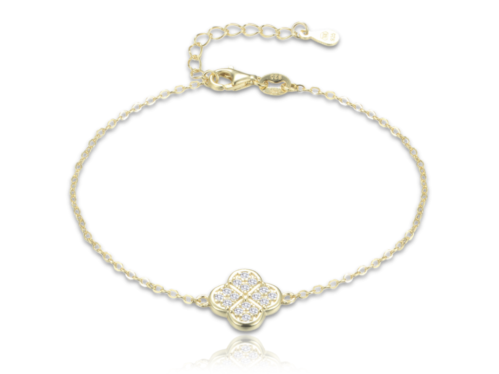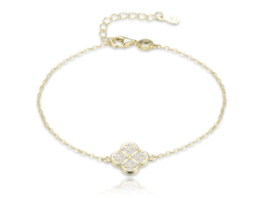 MINET Pozlacený stříbrný náramek čtyřlístek s bílými zirkony