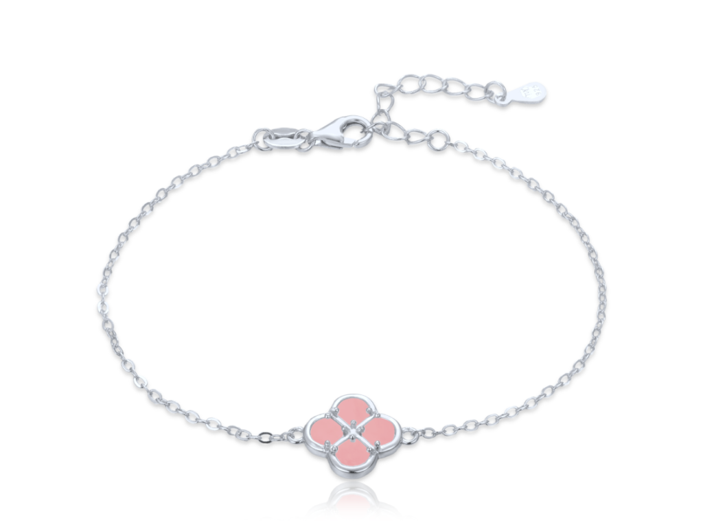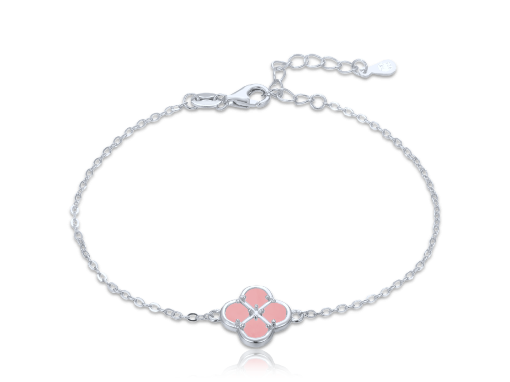 MINET Stříbrný náramek čtyřlístek s jadeitem