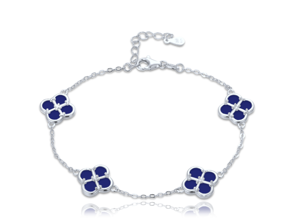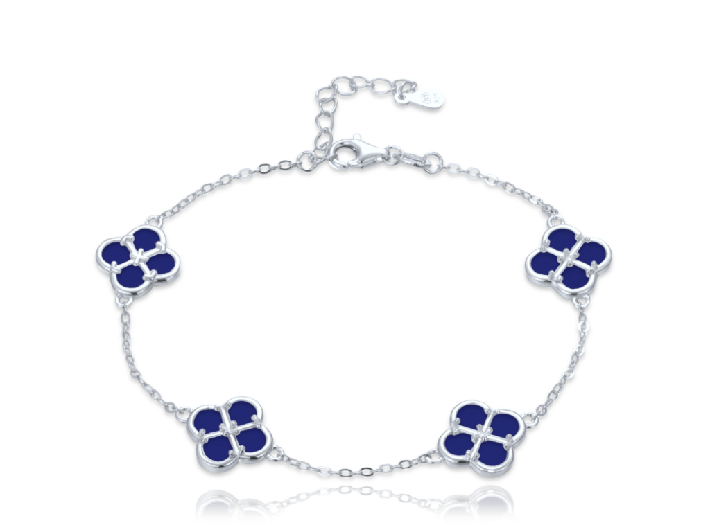 MINET Stříbrný náramek čtyřlístky s lapisy