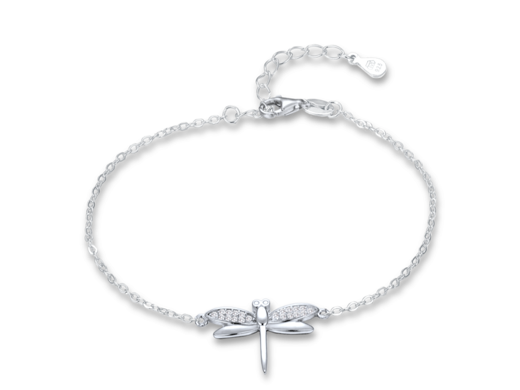 MINET Stříbrný náramek vážka s bílým zirkonem
