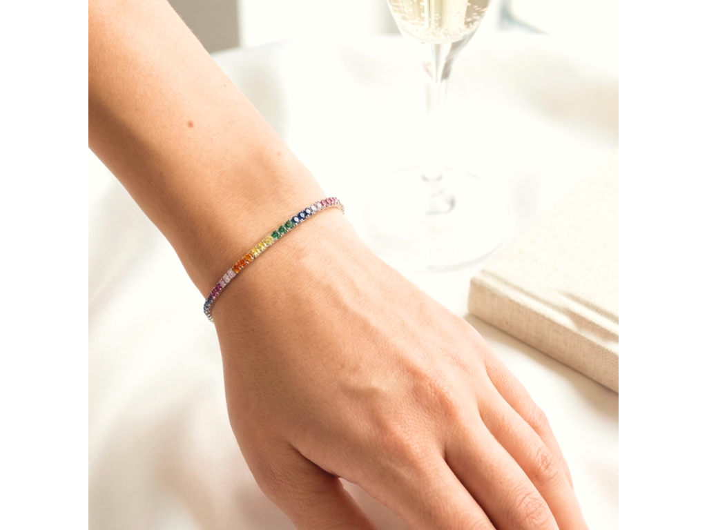 MINET Stříbrný tenisový náramek s různobarevnými zirkony