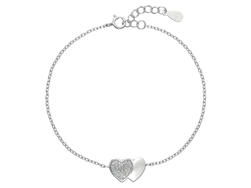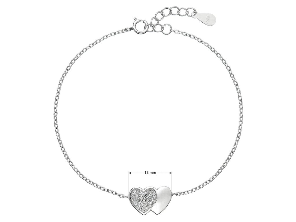 Náramek je vyroben ze stříbra ryzosti 925/1000, jehož povrch je ošetřen rhodiem. Rhodium šperk ochrání proti zčernání, zežloutnutí i poškrábání. Náramek zdobí jemný řetízek a dvojité srdíčko, která je osázeno bílými zirkony. Jelikož náramek neobsahuje žádný přídavek niklu, mohou jej bez obav nosit i alergici.