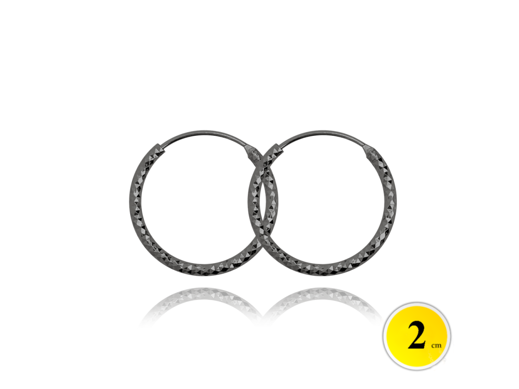MINET Černé broušené stříbrné náušnice KRUHY 2 cm