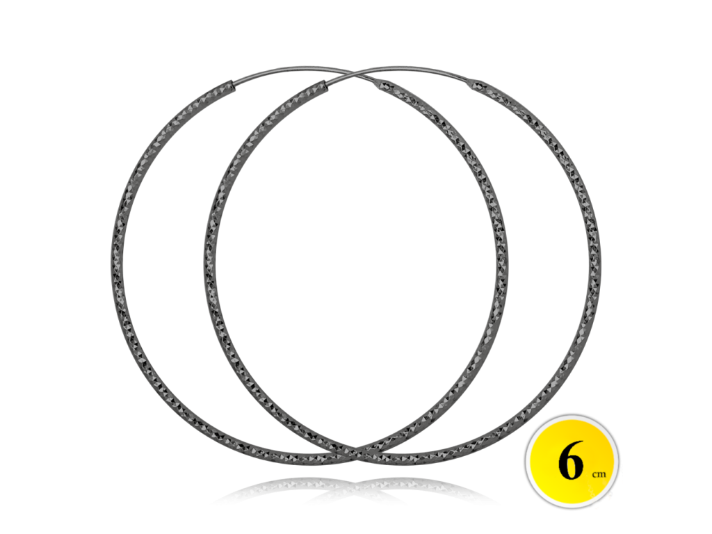 MINET Černé broušené stříbrné náušnice KRUHY 6 cm