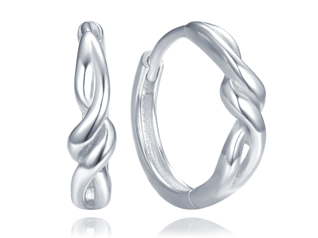 MINET Decentní stříbrné náušnice propletené kroužky
