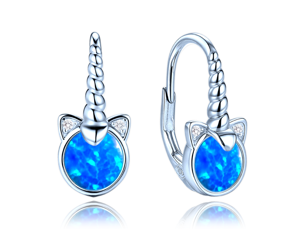 MINET Dětské stříbrné náušnice jednorožci s modrými opály a bílými zirkony