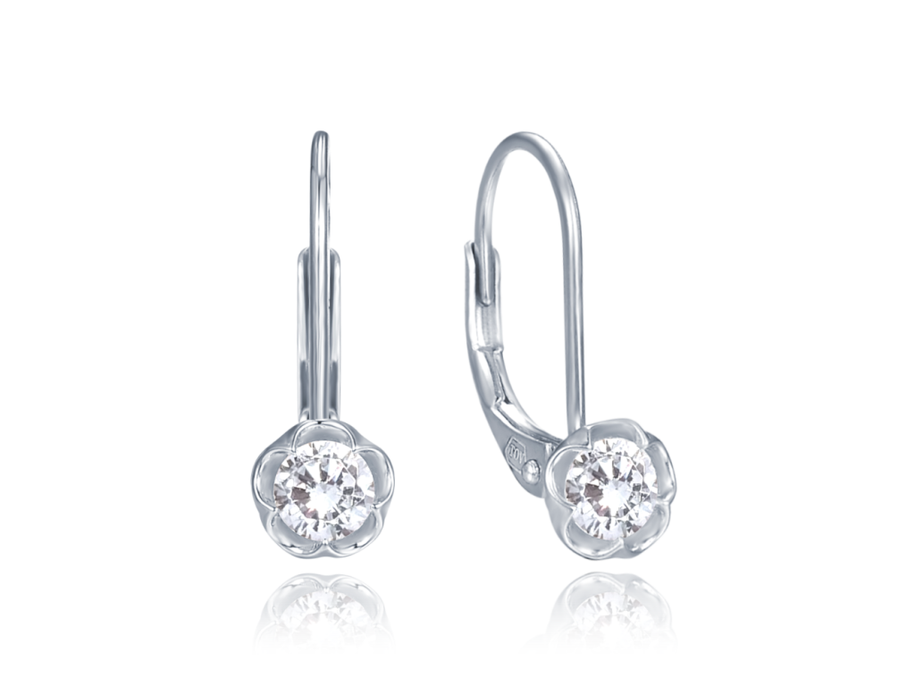 MINET Dětské stříbrné náušnice kytičky s bílými zirkony