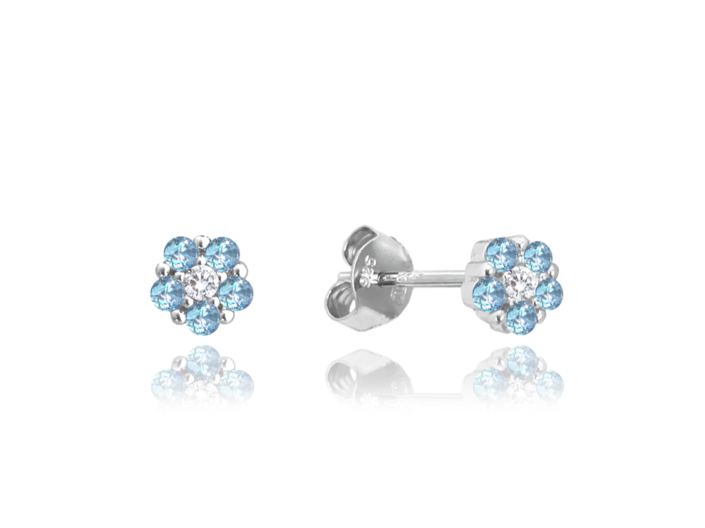 MINET Dětské stříbrné náušnice KYTIČKY se světle modrými zirkony