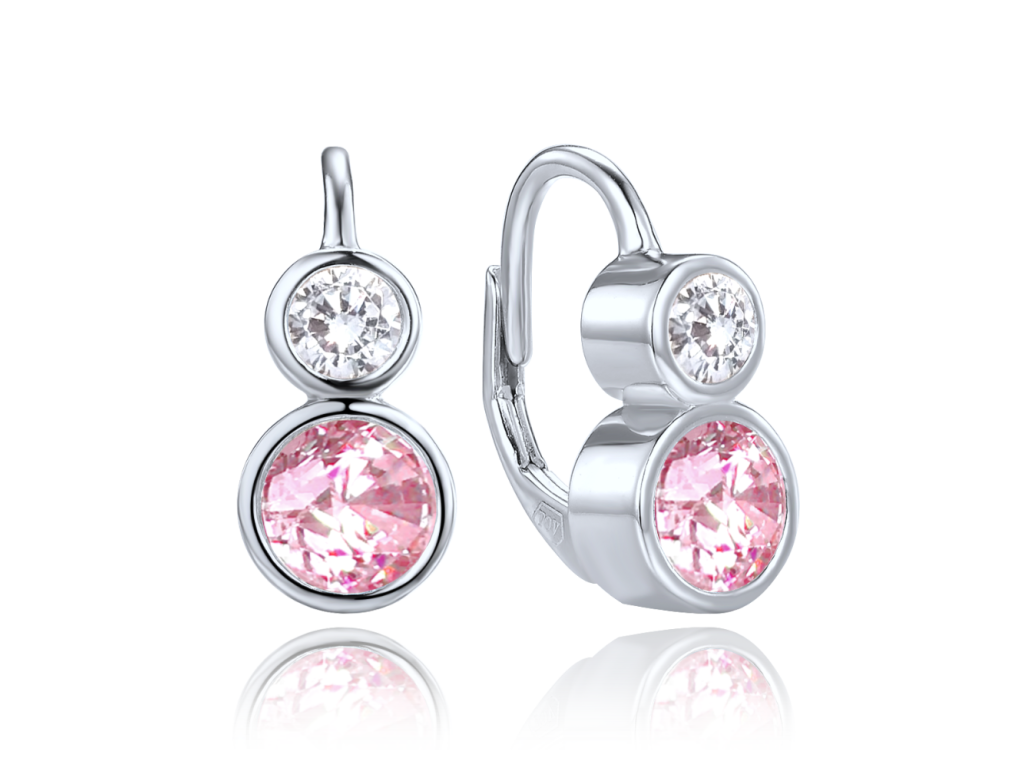 MINET Elegantní stříbrné náušnice s bílými a růžovými zirkony