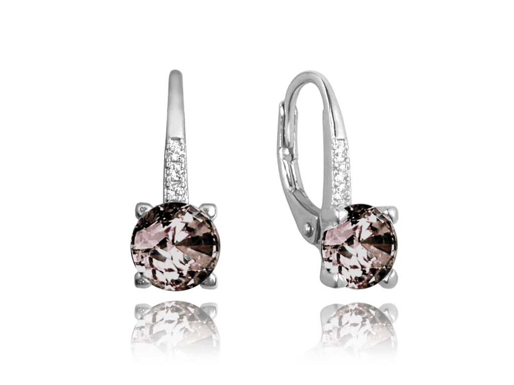 MINET Elegantní stříbrné náušnice s hnědým zirkonem