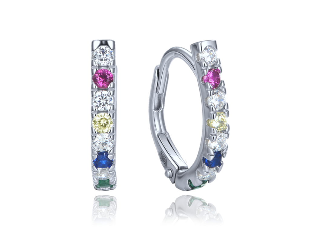 MINET Elegantní stříbrné náušnice s různobarevnými zirkony
