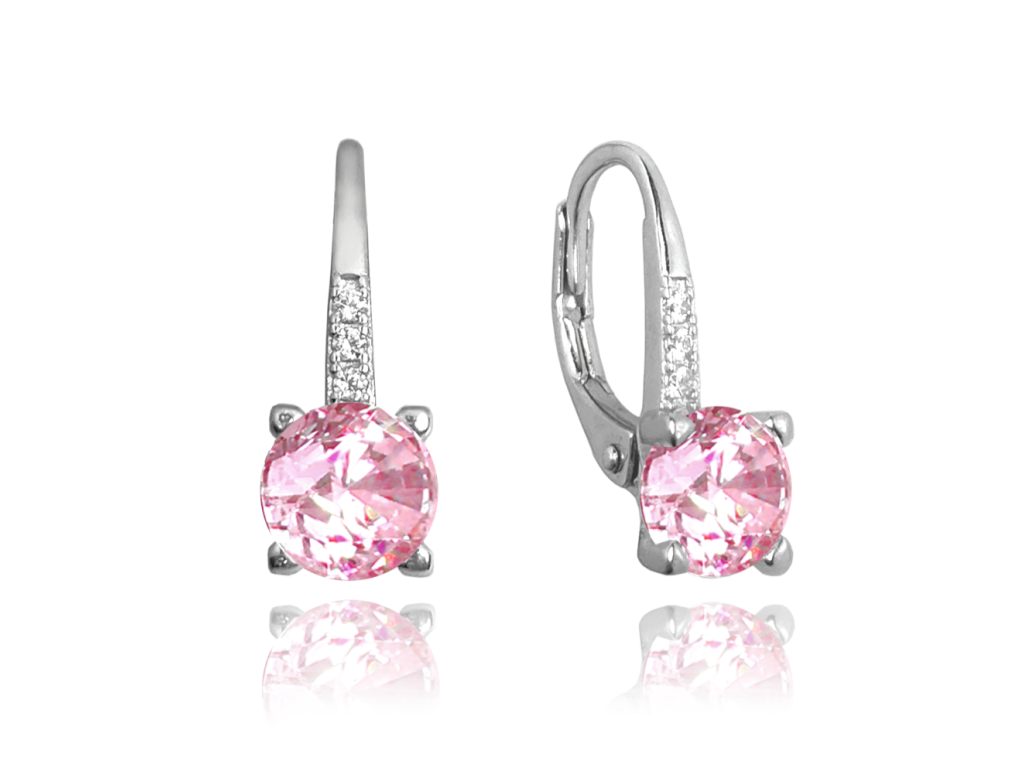 MINET Elegantní stříbrné náušnice s růžovým zirkonem